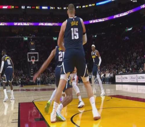 约基奇防守中遭队友琼斯误伤,琼斯踩到约基奇的脚,使得后者的膝盖扭转。